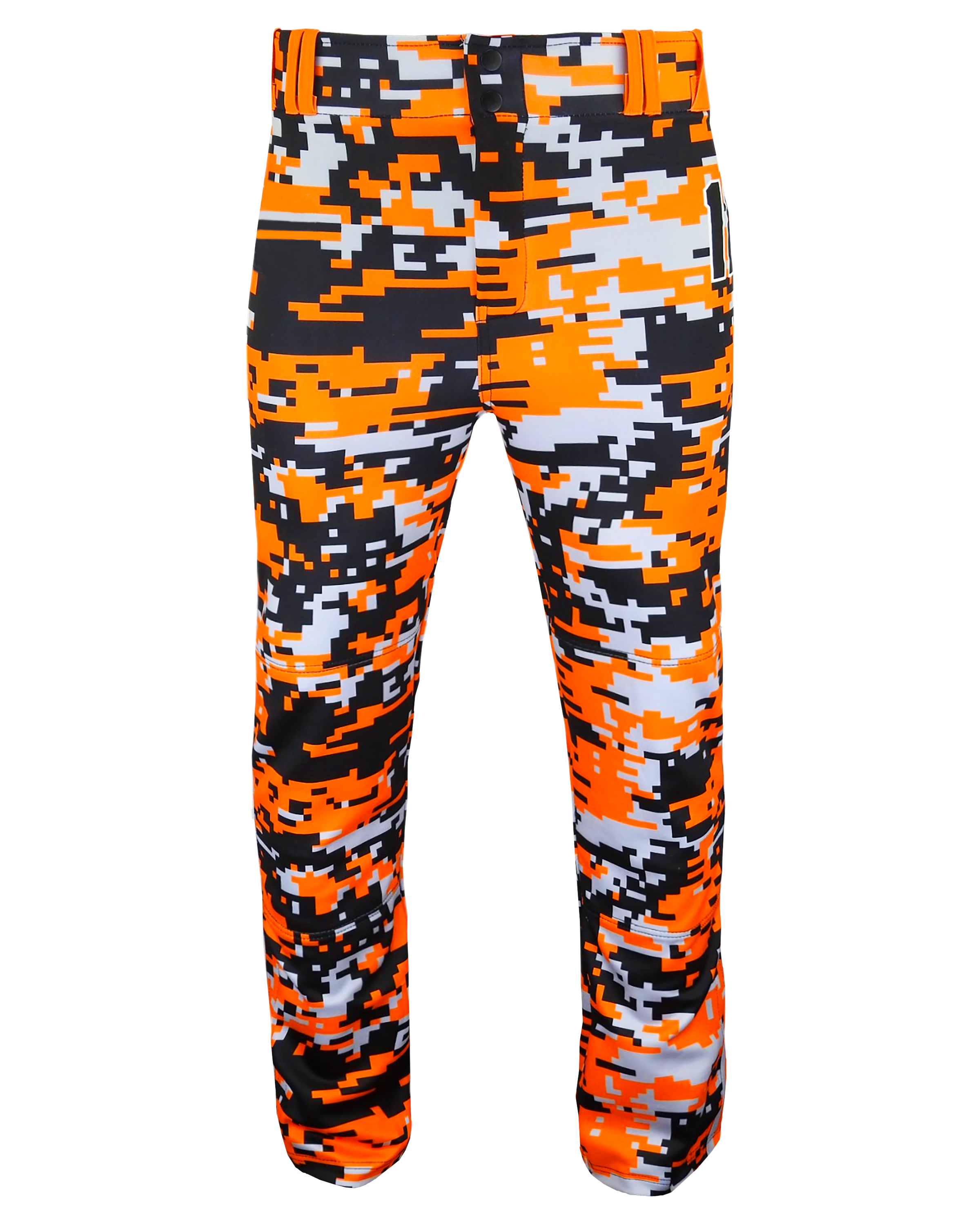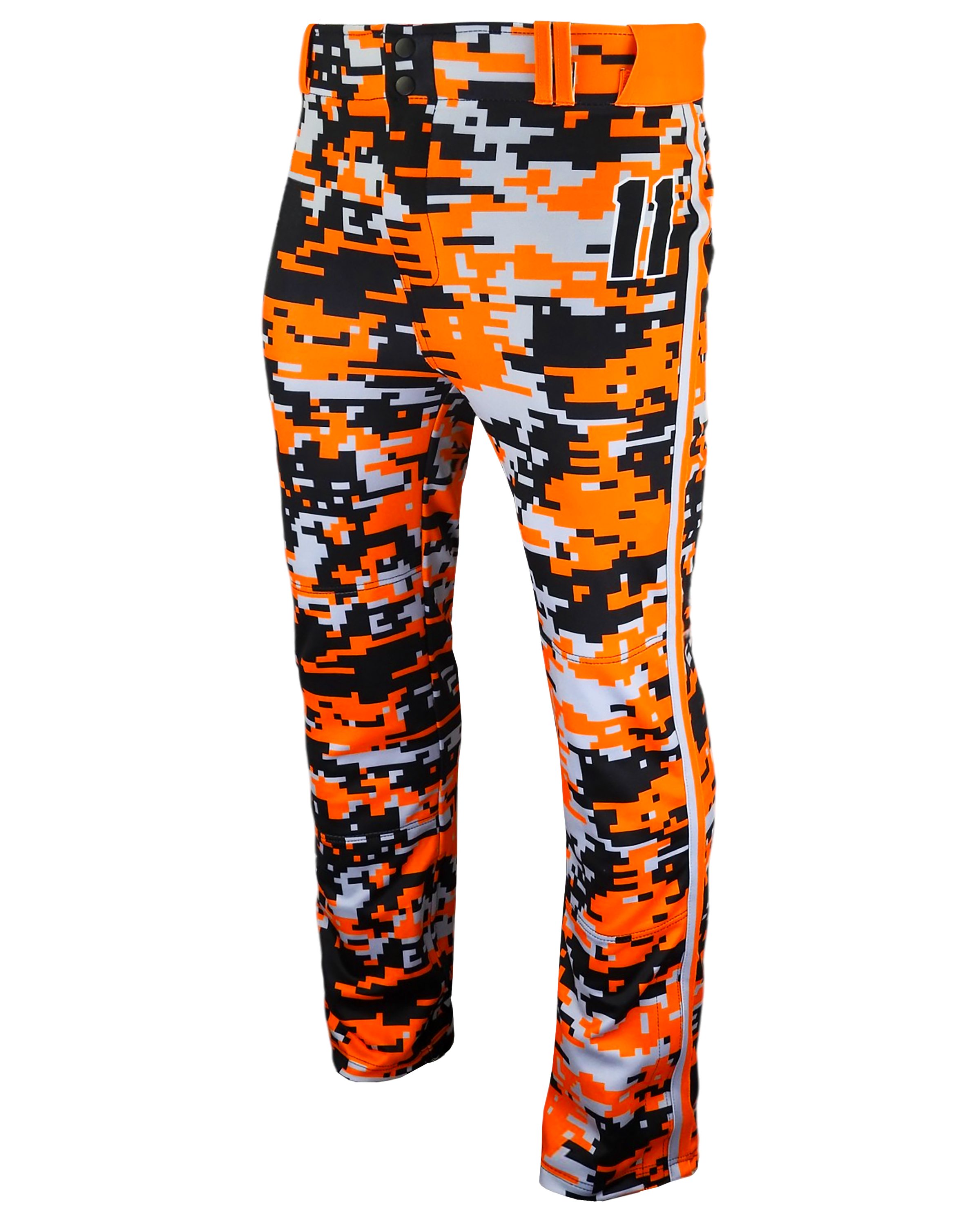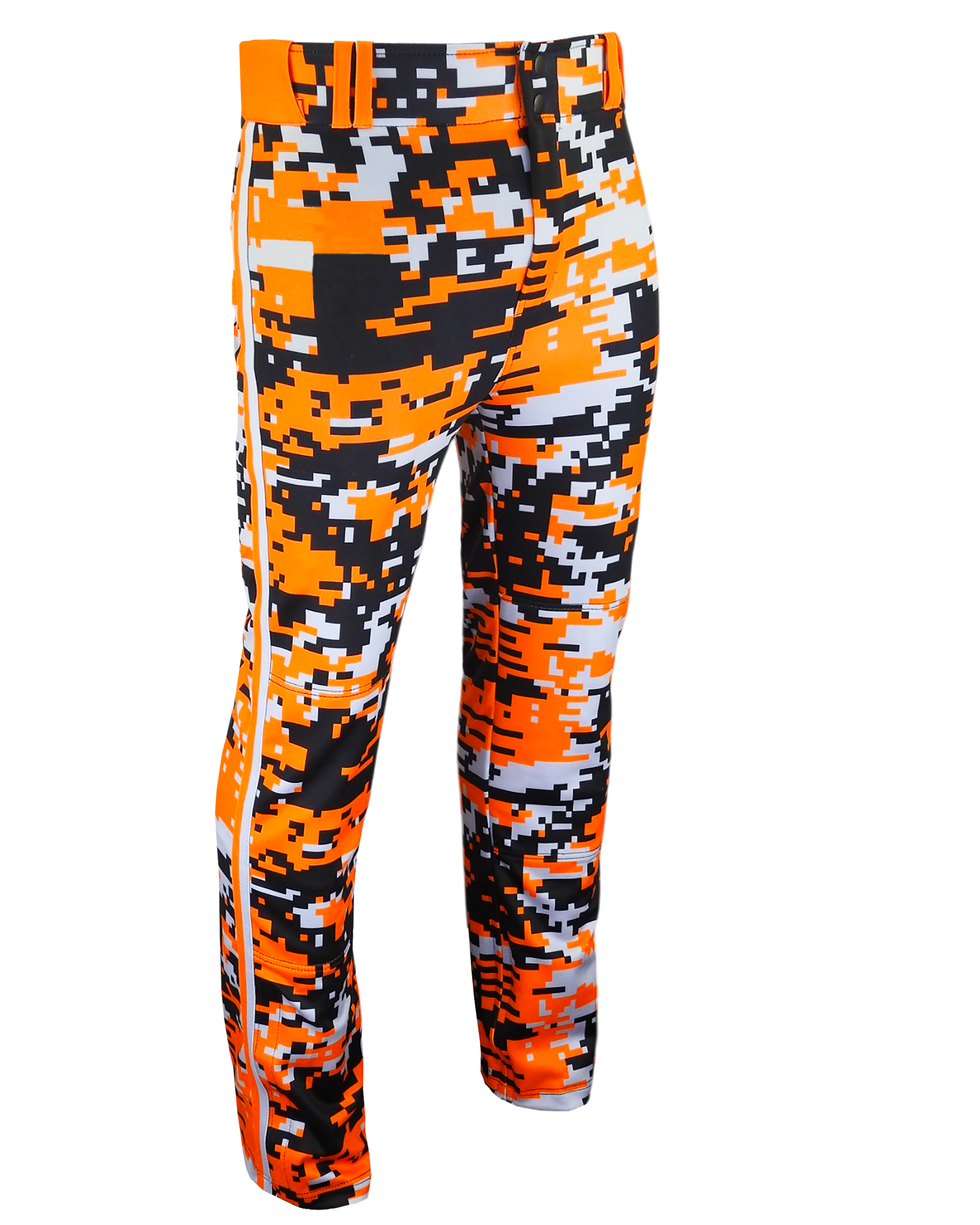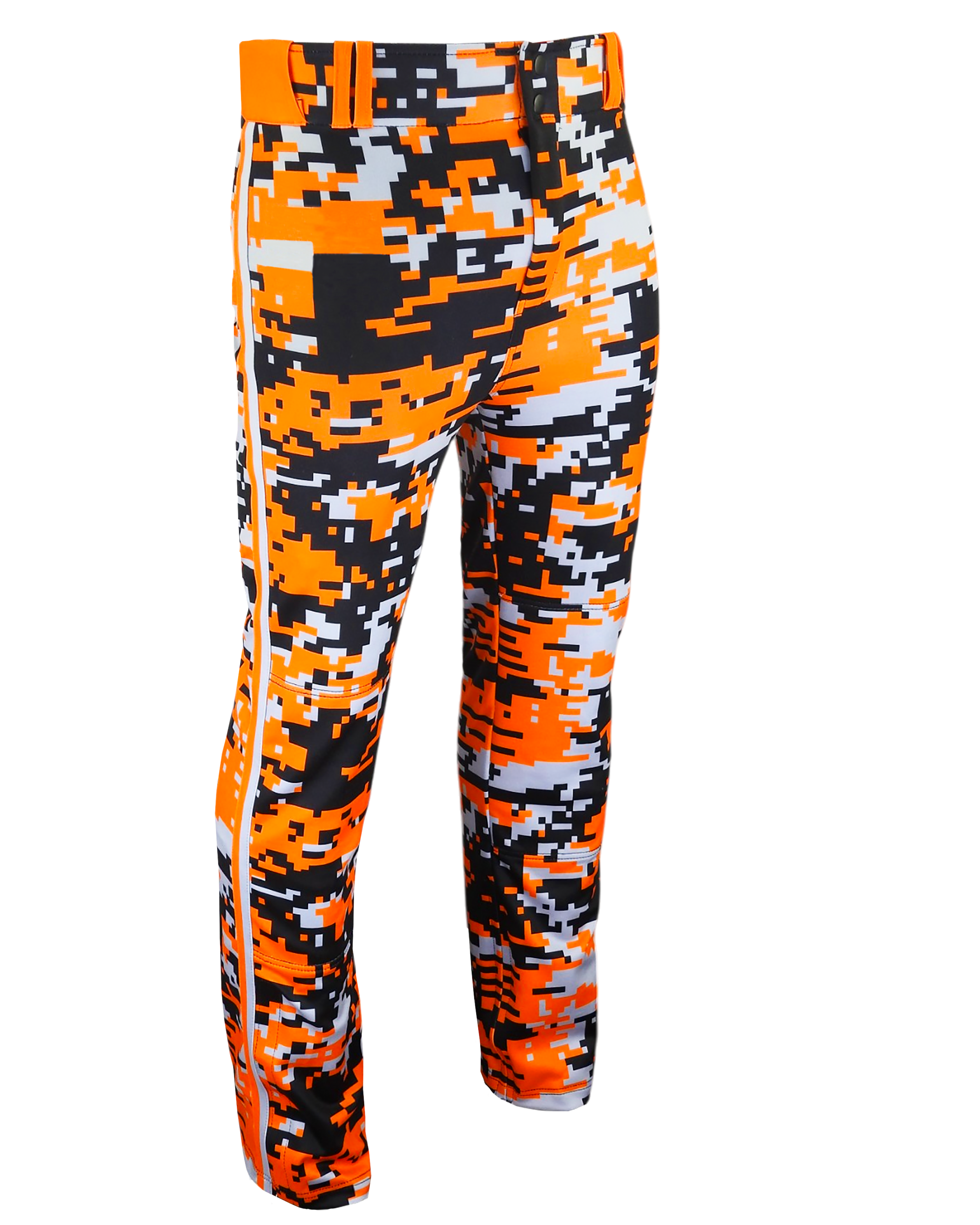 Our Open Bottom Pants are a full length, open-bottom baseball or softball pant that feature an adjustable inseam, a modern and tapered fit, and velcro strap on the inside of each pant leg. These straps provide the ability to adjust the inseam as needed. Feature a single row colored braid sewn down the sides of the leg and colors can be customized to match all of your jerseys and team colors.